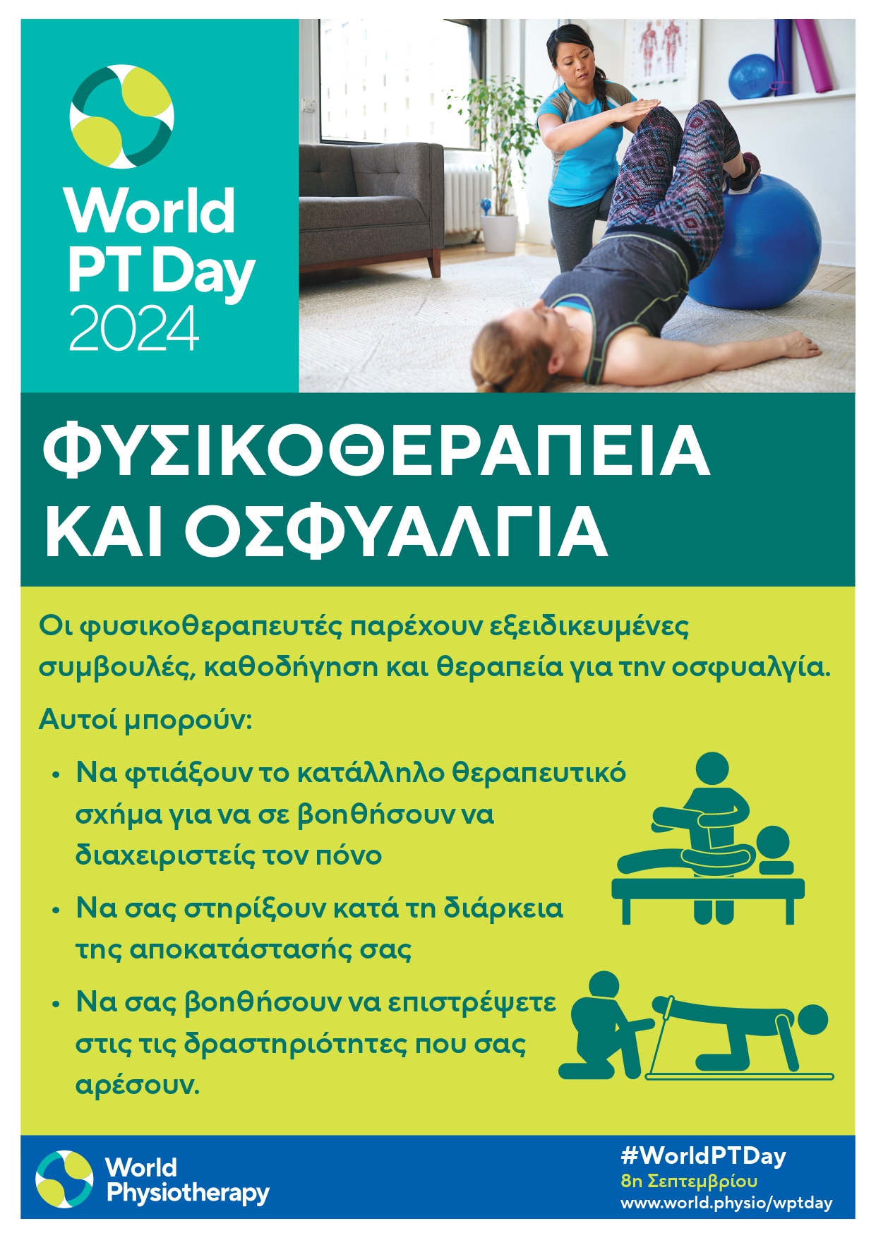 Η Παγκόσμια Ομοσπονδία Φυσικοθεραπείας, δημιούργησε το σχετικό ενημερωτικό υλικό το οποίο μεταφράστηκε από το Κεντρικό Διοικητικό Συμβούλιο του Πανελληνίου Συλλόγου Φυσικοθεραπευτών.