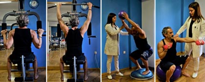 4ον ). Εξατομικευμένο πρόγραμμα θεραπευτικής άσκησης με όργανα γυμναστικής για ενδυνάμωση κορμού και άκρων για 30 λεπτά, 3 έως 5 φορές την εβδομάδα.